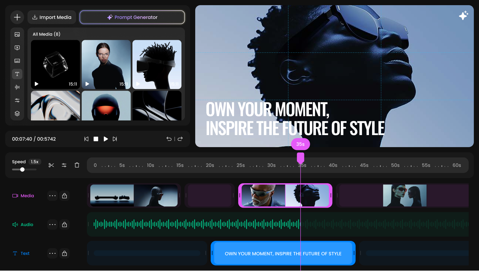 Generate scenes, voiceovers, captions, and more automatically with AI.